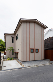 周辺は準防火地域に指定されており、建築基準法の様々な制約を受けるうえ、この地域特有の間口が狭い、狭小敷地での計画でした。