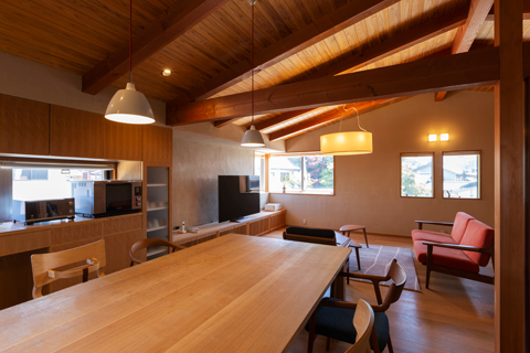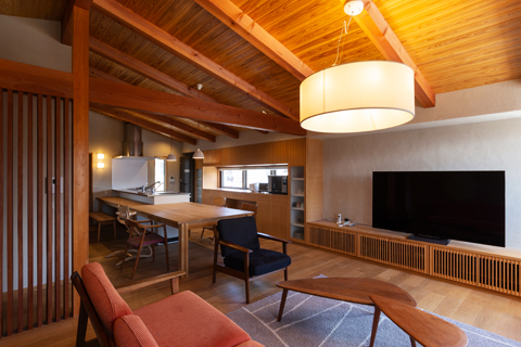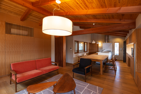 個室は1階に配し、LDK・和室は見晴らしの良い2階に設け、造り付けのカウンターテーブルからは大山が、リビングの出窓からは米子城跡が望めます。
