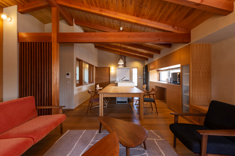 壁はご主人こだわりのシラス壁、天井は杉板張りとし、自然に調湿し、自然の風を通すことで、できる限り機械に頼らず暮らせるように考えられています。