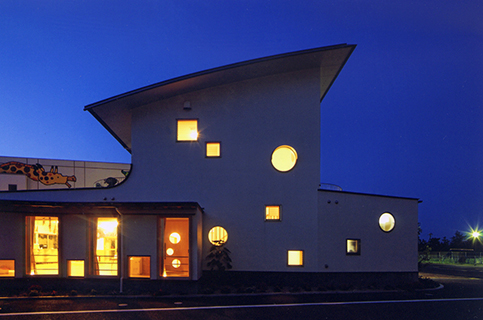 また部屋の中は子供たちがいろいろな遊びを発見できるようになっており、お昼寝の時には天井を眺めると照明が星座の形をしていたり、雨樋の一部には大小の穴をあけ、部屋の中から雨だれが楽しめるようになっています。もぐって遊べるように部屋の各所にはトンネルを設け、トイレもおもちゃ箱のような親しみのある形をしています。