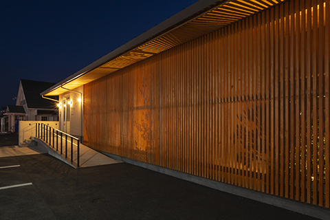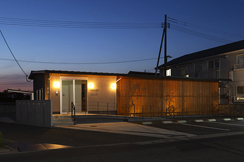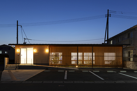 鳥取県米子市両三柳に建つ、ファサードの立格子が印象的な歯科医院です。