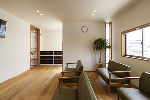 最大4つのユニットが入る半個室の治療室の中心に消毒コーナーを設え、裏手にスタッフ動線をまとめた、シンプルで機能的なプランニングとしています。